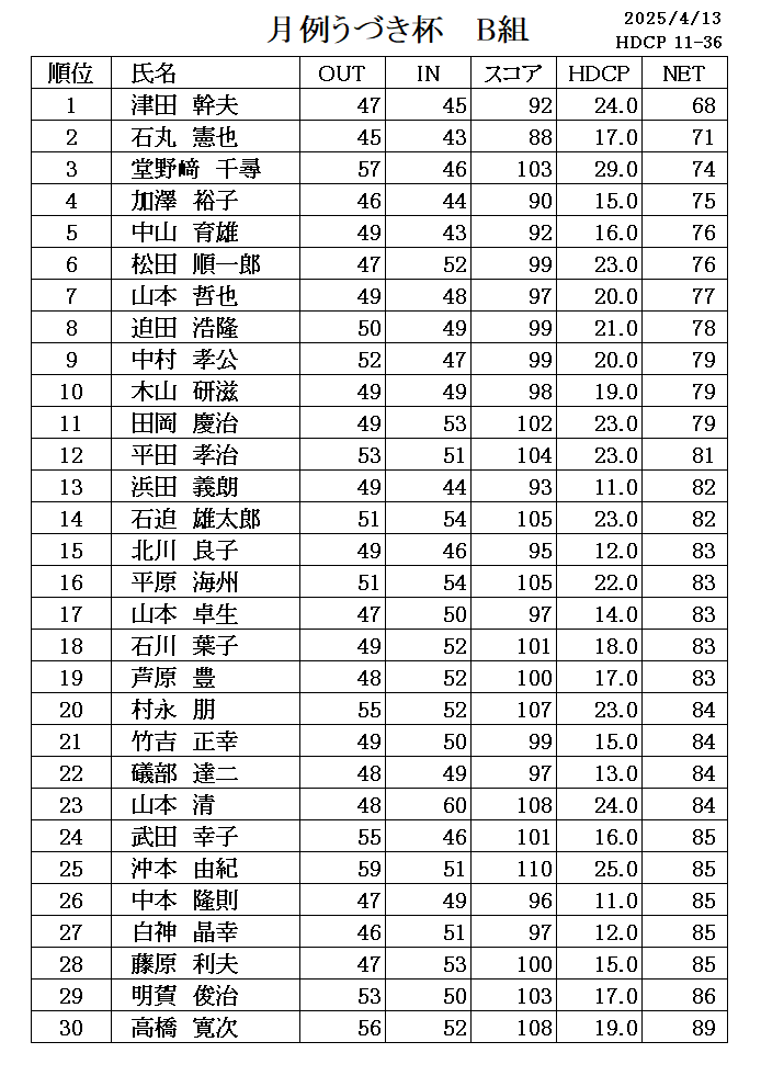B組(HDCP 11-36)の上位3名様は、