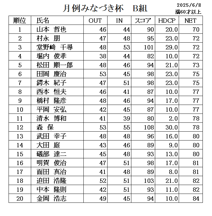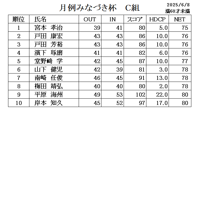 月例みなづき杯の結果発表です。(令和7年6月8日開催)