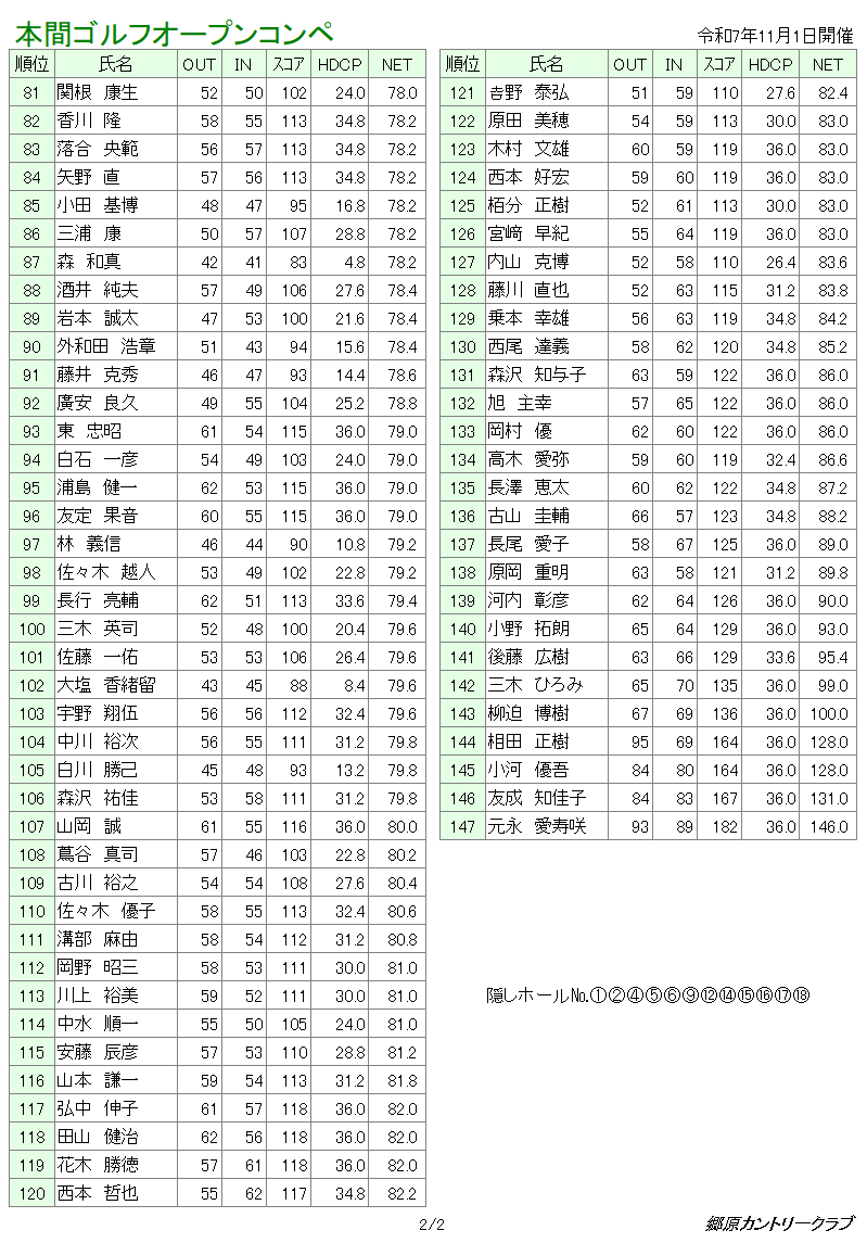 3位:萬谷 年治さん(スコア 87 ネット 71.4 ) でした。