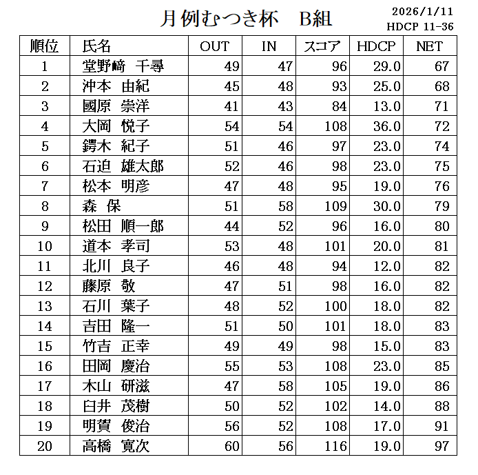 月例むつき杯の結果発表です。(令和8年1月11日開催)