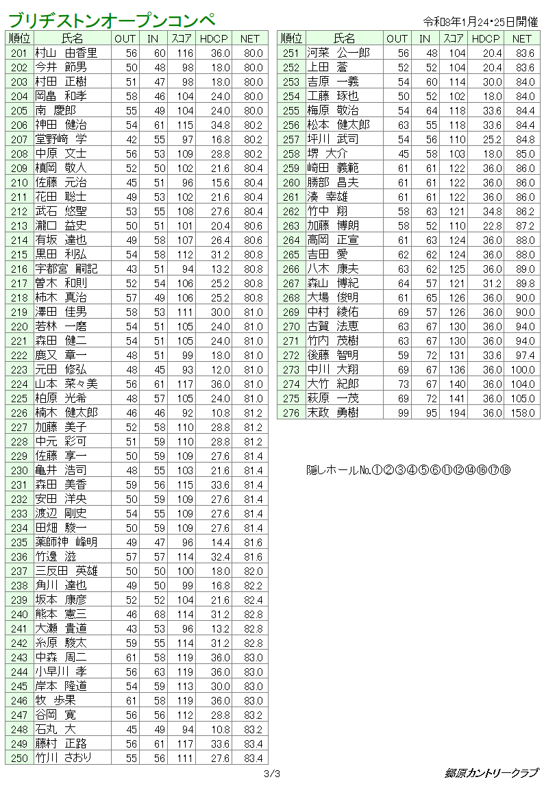 3位:久留島匤繕さん(スコア 93 ネット 70.2 ) でした。