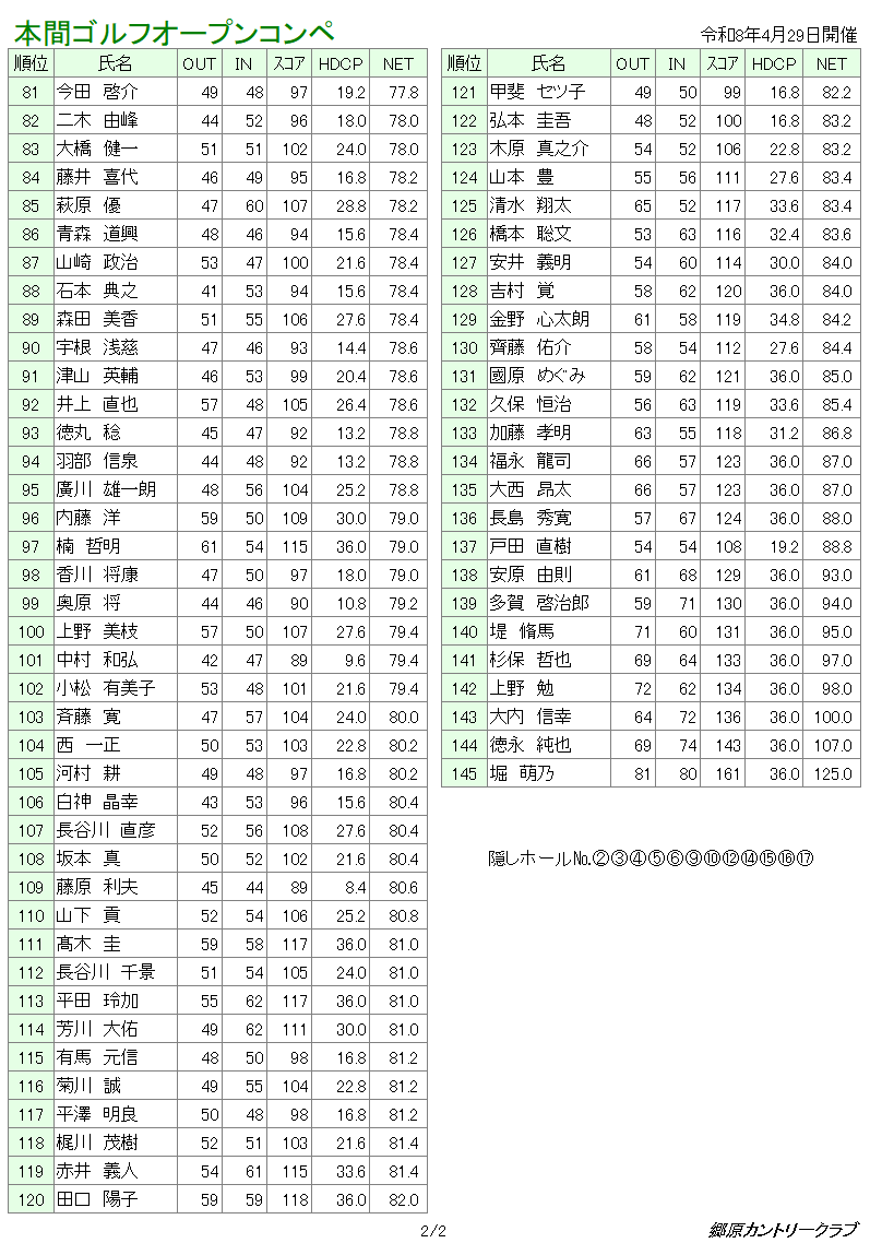 3位:中岡 秀敏さん(スコア 90 ネット 70.8 ) でした。
