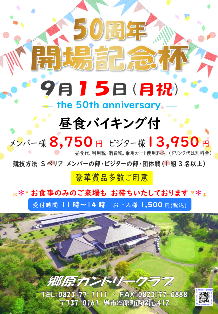50周年開場記念杯 開催 来たる9月15日、私たちは開場50周年という大きな節目を迎えます。 これもひとえに、長年にわたりご支援・ご愛顧くださった皆様のおかげであり、心より感謝申し上げます。 つきましては記念すべき日に、5…